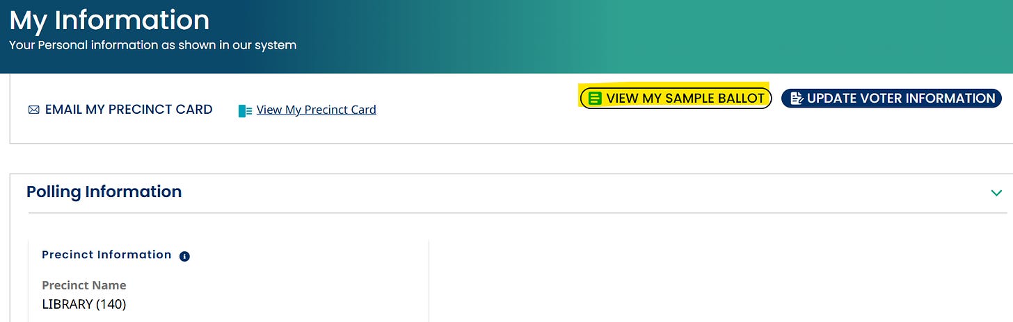 b) Start with your voter page usually on your Secretary of State office’s website. See if there is a sample ballot that you can download/print. I’ve attached a screenshot of how that looks on the Georgia voter page.